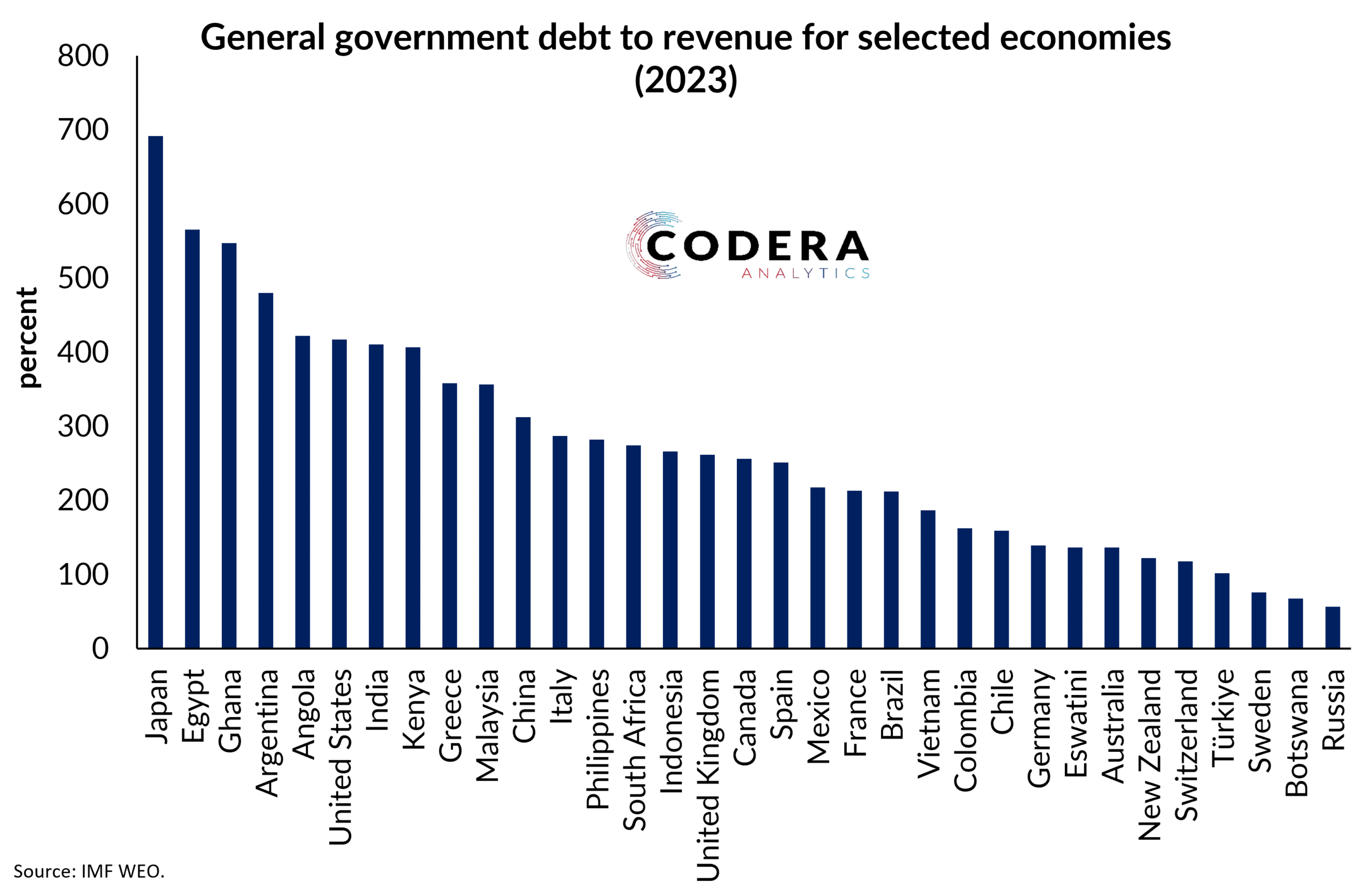Public debt to revenue across major economies - Codera Analytics
