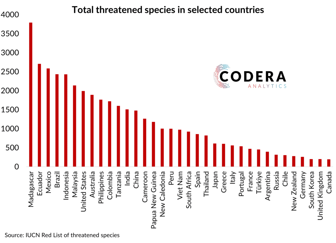 Threatened species in SA vs World - Codera Analytics