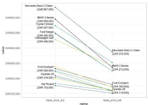 To answer the question he scraped adverts for second-hand cars on Gumtree, for a total of 390 000 different vehicles across South Africa.